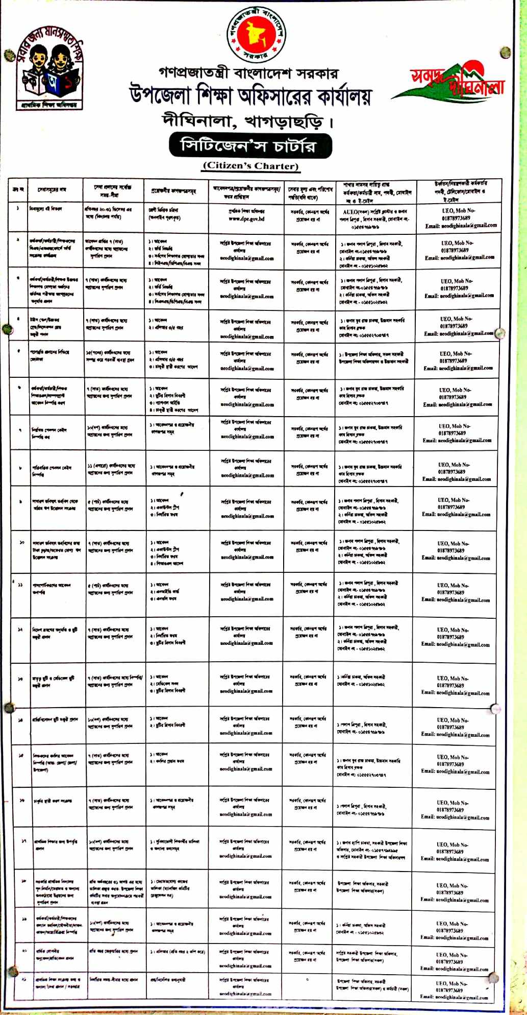 ১৭ | শিক্ষকদের বদলীর আবেদন নিষ্পত্তি (উপজেলার মধ্যে) | শিক্ষক/ শিক্ষিকা | উশিঅ বরাবরে এ সংক্রান্ত ‘নীতিমালা’ অনুসারে আবেদন করতে হবে। | প্রযোজ্য ক্ষেত্রে বদলির ব্যবস্থা গ্রহন;কিন্তু বিদ্যমান ‘নীতিমালা’ অনুসারে তা সম্ভব না হলে সেটি আবেদনকারীকে অবহিত করতে হবে। | ৭ (সাত) কার্যদিবসের মধ্যে |